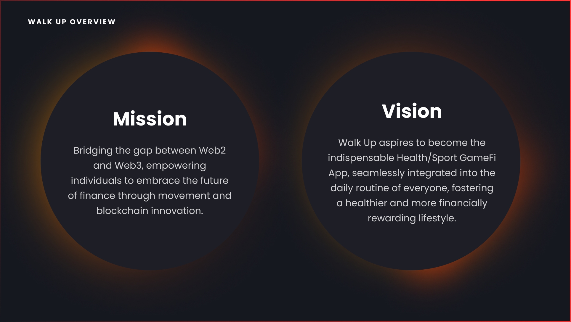 등장배경: Walk Up은 블록체인 프로젝트와 전통적인 비즈니스를 연결하는 생태계가 되겠다는 사명으로 탄생했습니다. 우리는 Web2와 Web3 사이의 격차를 해소하여 디지털 영역 간의 원활한 통합을 만드는 것을 목표로 합니다.